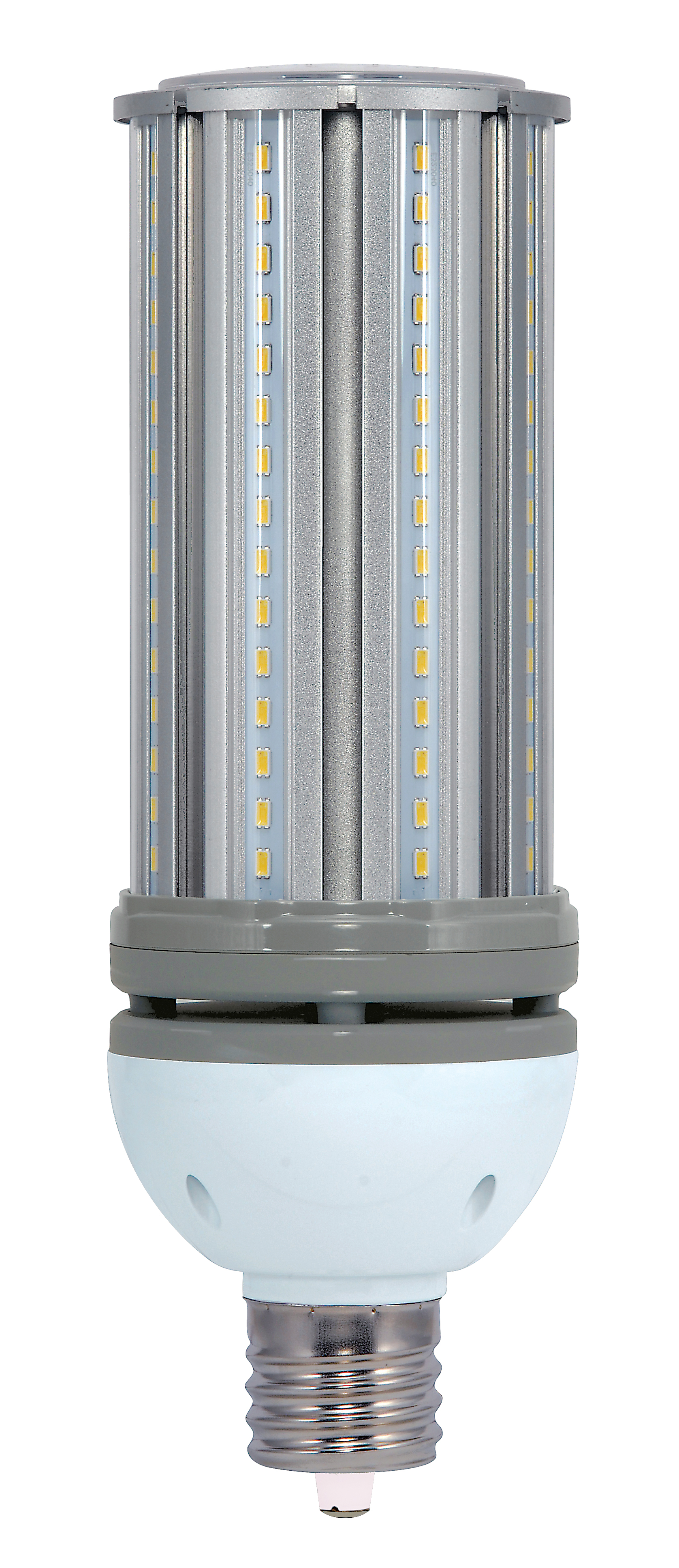 SATCO® Retrofit LED, Non-Dimmable, Series: Hi-Pro, 45W/LED/HID/5000K/100-277V/EX39 Designation, 45 W Wattage, 300 W Incandescent Equivalent, 100 to 277 VAC, LED Lamp, EX39 Extended Mogul Lamp Base, 5400 Lumens Initial Lumens, 50000 hr Average Life, 80 CRI, 5000 K Color Temperature, White Lamp, Bypass/Direct Wired Ballast, 300 deg Beam, 3.69 in Dia x 10.75 in L Dimensions