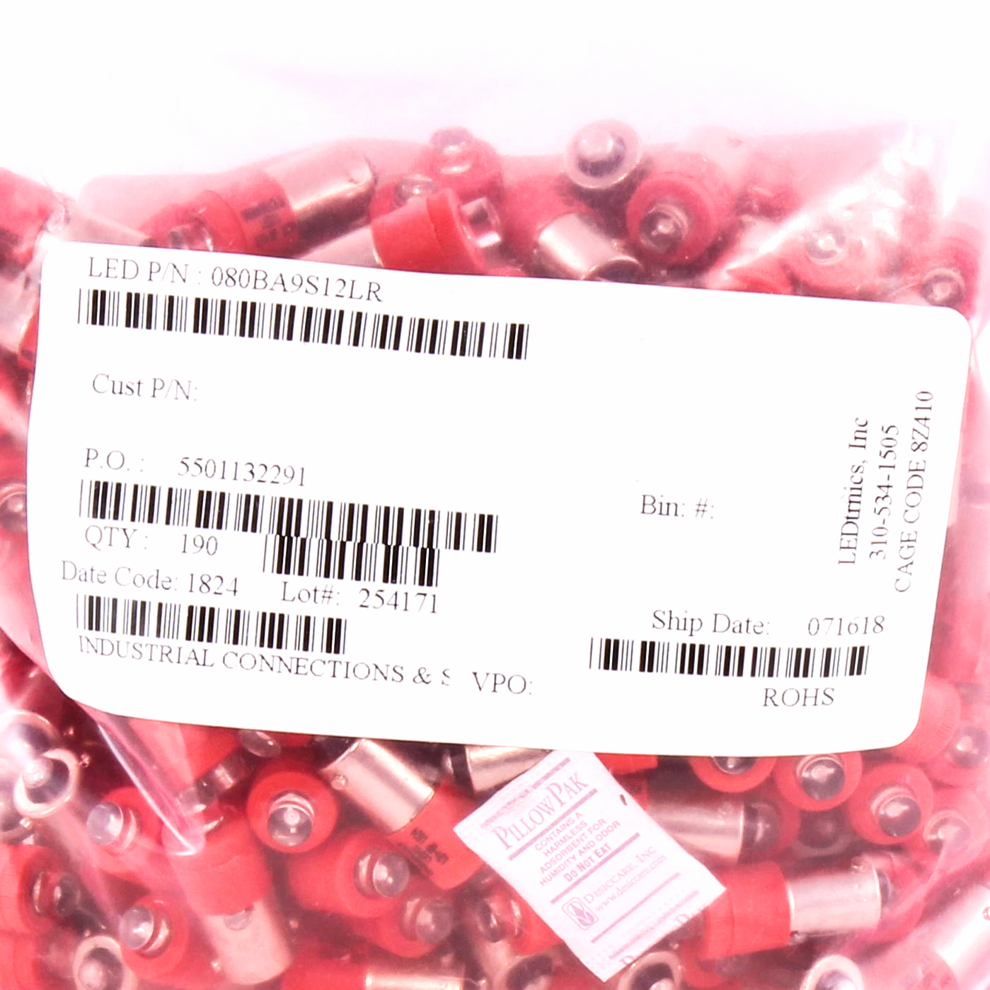 GE Lamp, Flat Top, 0.72 W Wattage, 12 VAC/VDC, LED Lamp, Bayonet Lamp Base, 100000 hr Average Life, Red Lamp