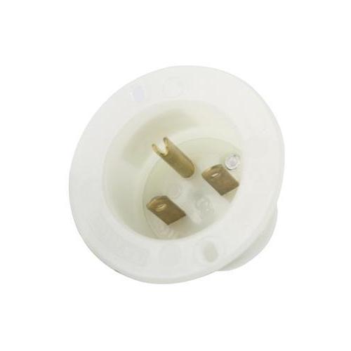 Leviton® 15678-C Grounding Inlet Receptacle, 250 VAC, 15 A, 2 Poles, 3 Wires, White