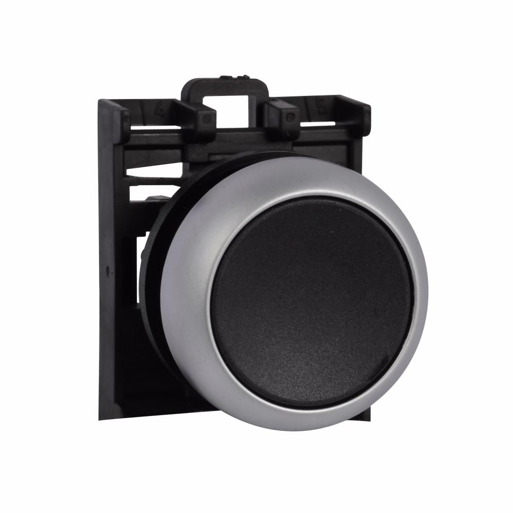 EATON RMQ-Titan® Non-Illuminated Pushbutton Operator, Modular, Series: M22, 22.5 mm Size, Momentary Contact Mode, Flush Button Operator, NEMA 4X/13/IP67/IP69K Enclosure, Flush Mounting, Bezel/Housing: Silver Bezel, -25 to 70 deg C, Plastic, Black