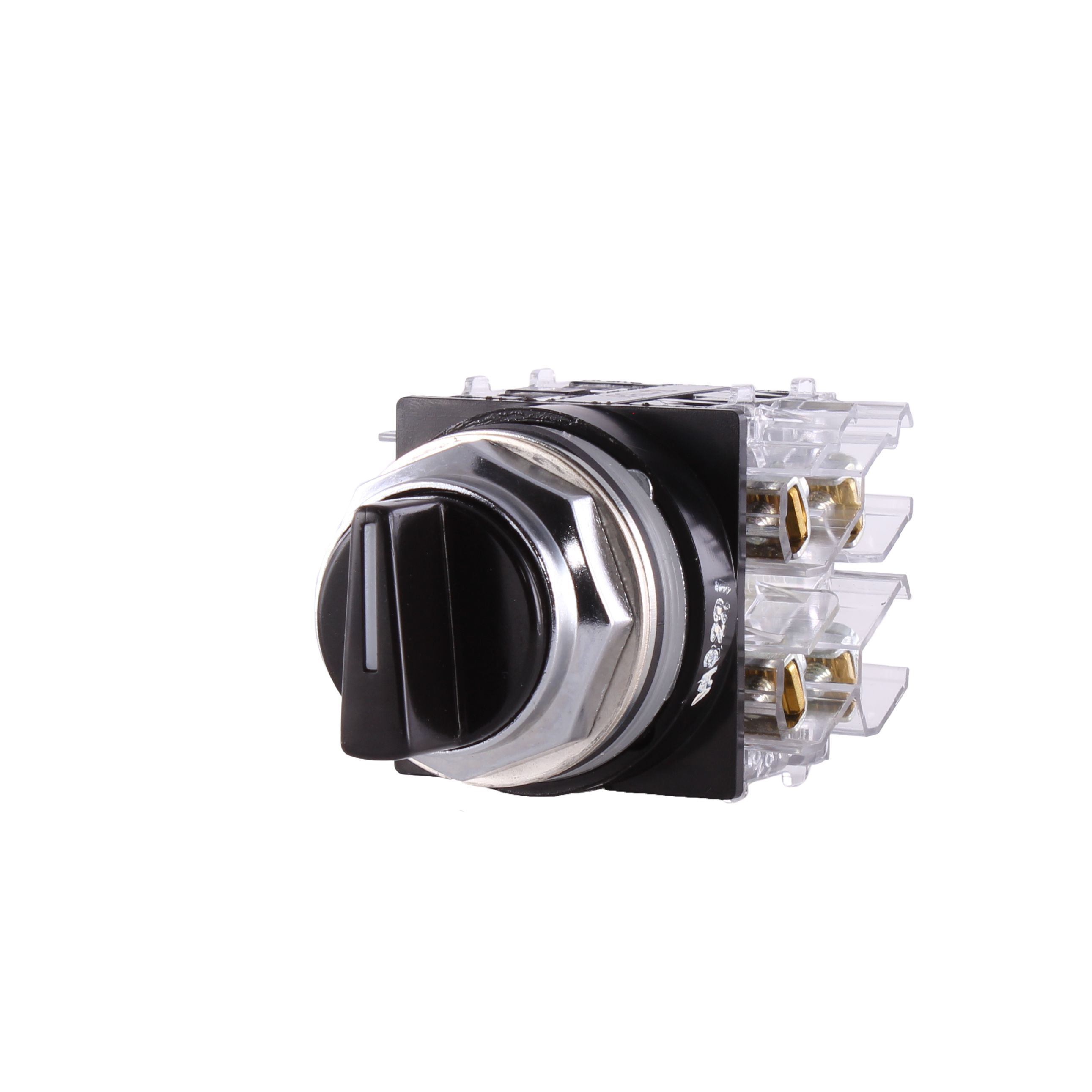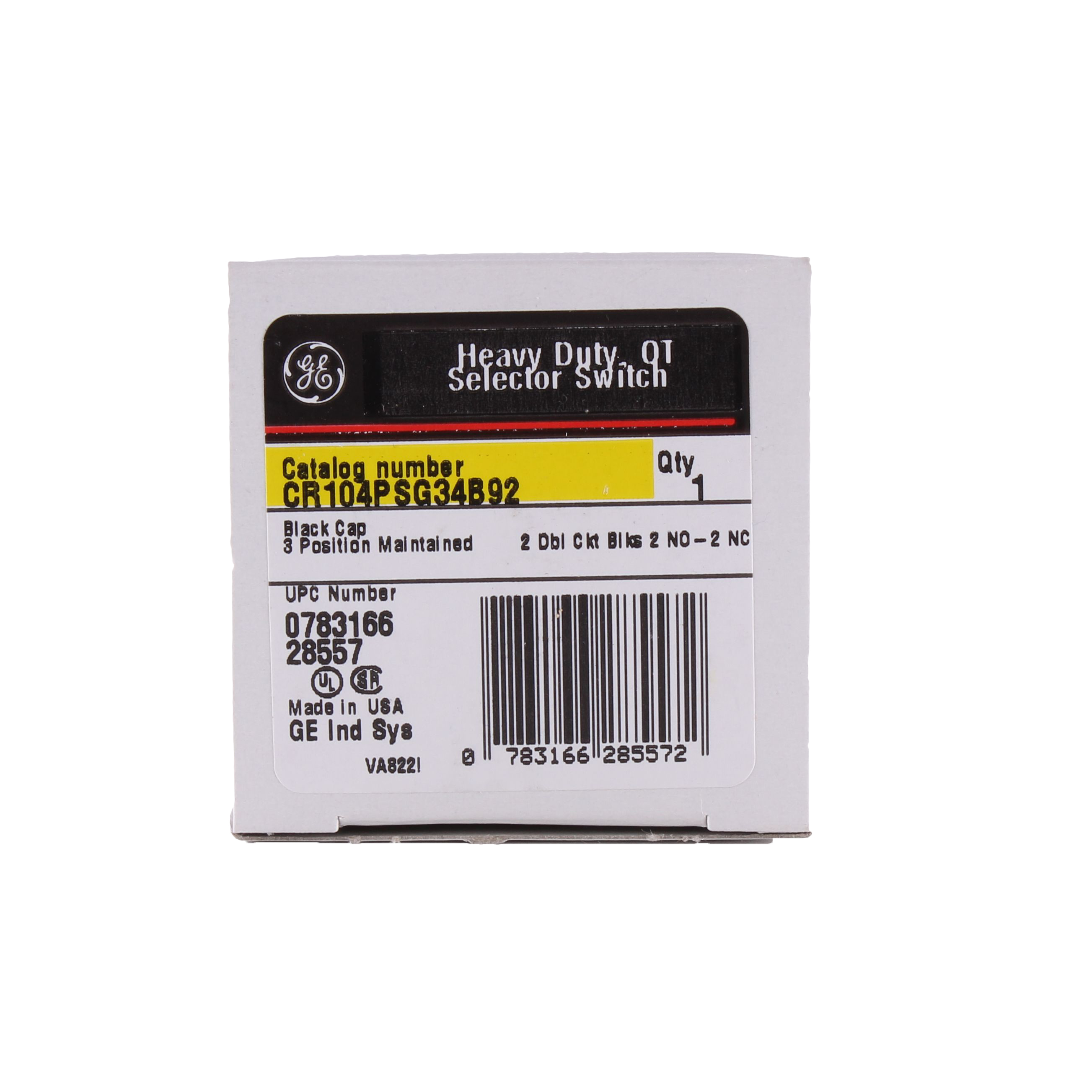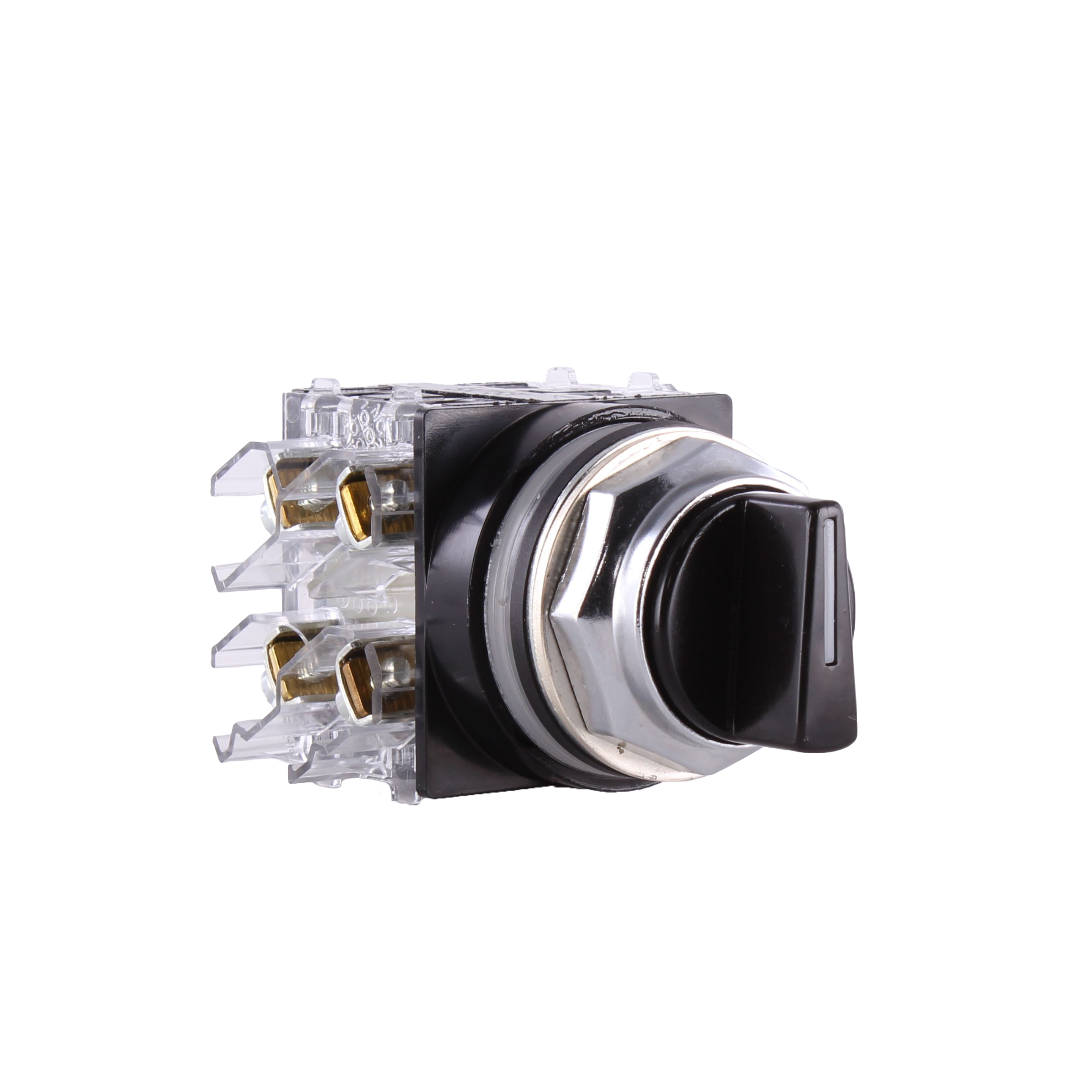 GE Non-Illuminated Selector Switch, Heavy Duty Oiltight/Watertight, Series: CR104P, 30.5 mm, 2NO-2NC, Maintained Contact Mode, 10 A at 600 VAC/VDC Contact, Knob Operator, 3 Positions, Left to Right Throw, Cam Code: 4, Bezel/Housing: Chromium Plated Zinc Ingot, NEMA 1/3/3R/4/4X/12/13, Snap-On Mount, Nylon, Environmental Conditions: -13 to 158 deg F Operating Temperature