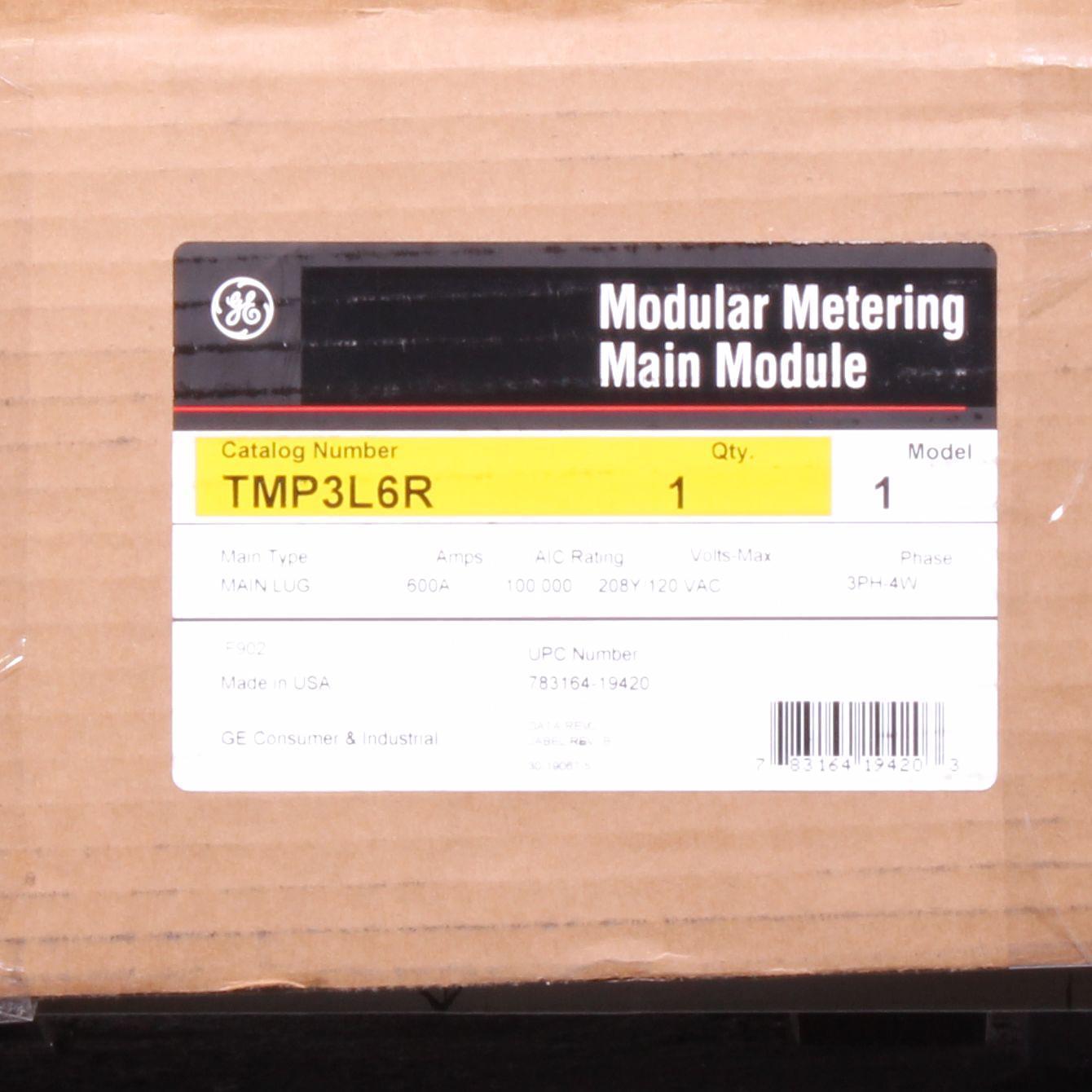 GE Mod™ III TMP3L6R 4-Wire Modular Metering Main Lug Module, 120/208Y/240 VAC, 600 A, 3 Phase, Bottom/Top Feed, NEMA 3R Enclosure