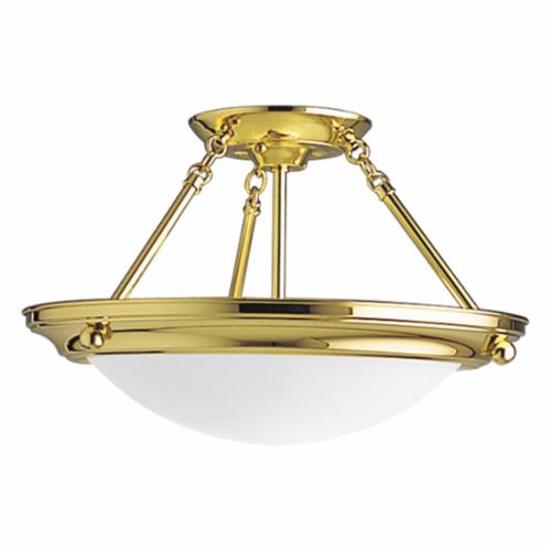 Progress Lighting® Flush Mount Fixture, Classic Traditional, Series: Eclipse, 120 VAC, A19 Incandescent Lamp, 100 W Lamp, Medium Lamp Base, 2 Lamps, Gold Light, White Glass Shade, Glass Lens, Ceiling Mounting, Steel Housing Material, Brass Housing Finish, 10-5/8 in H x 15-1/4 in W Dimensions