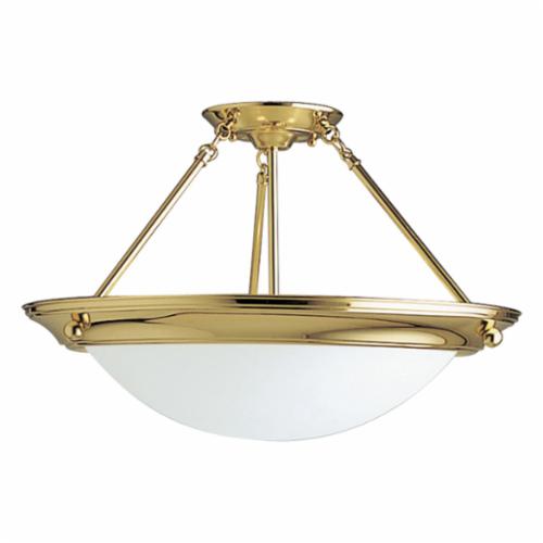 Progress Lighting® Flush Mount Fixture, Classic Traditional, Series: Eclipse, 120 VAC, A19 Incandescent Lamp, 100 W Lamp, Medium Lamp Base, 3 Lamps, Gold Light, White Glass Shade, Glass Lens, Ceiling Mounting, Steel Housing Material, Brass Housing Finish, 13-1/4 in H x 19-3/8 in W Dimensions