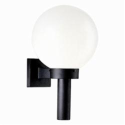 • 1-light cast aluminum wall torch with a white shatter resistant globe and black finish