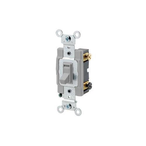 Leviton® AC Quiet Toggle Switch, Framed Grounding, 120/277 VAC, 15 A, 1/2, 2 hp Power, 1 Pole, Toggle Actuator, NEMA WD-1/WD-6 Enclosure, Surface Mounting, Side Wire Terminal, Thermoplastic, Gray, Environmental Conditions: -40 to 120 deg C Operating Temperature, 46 in H x 1.31 in W x 1.47 in D Dimensions