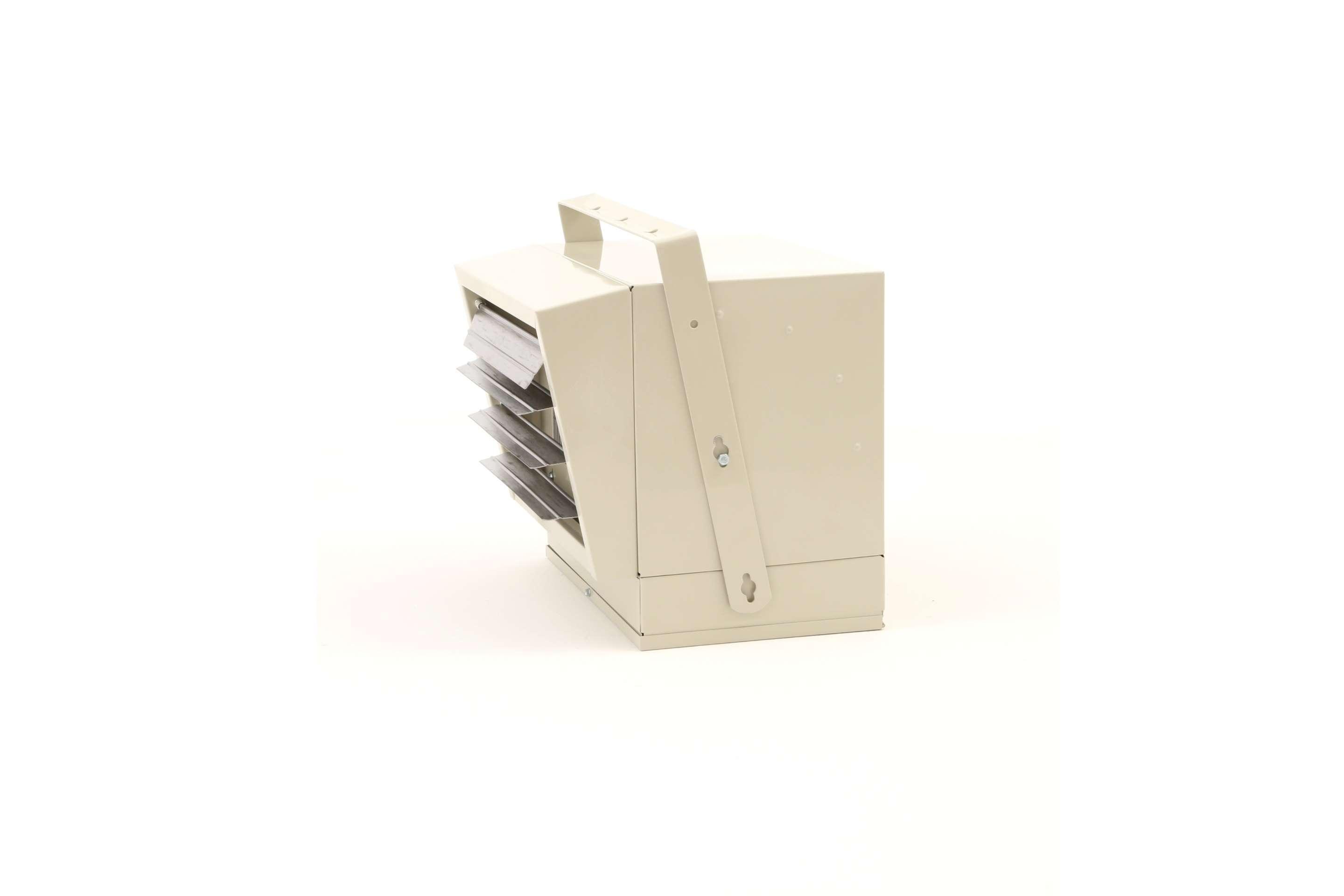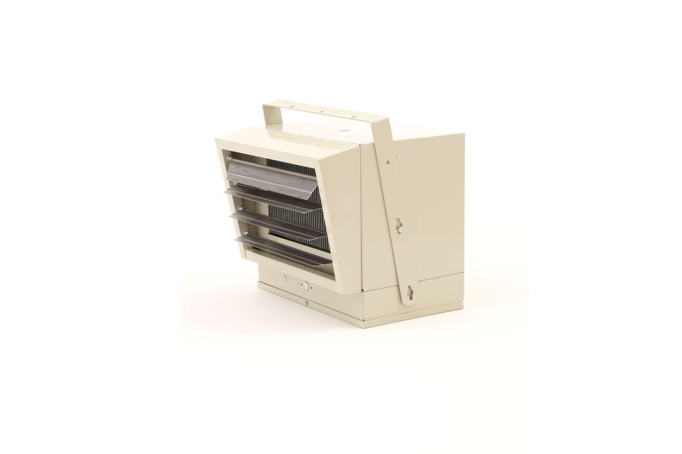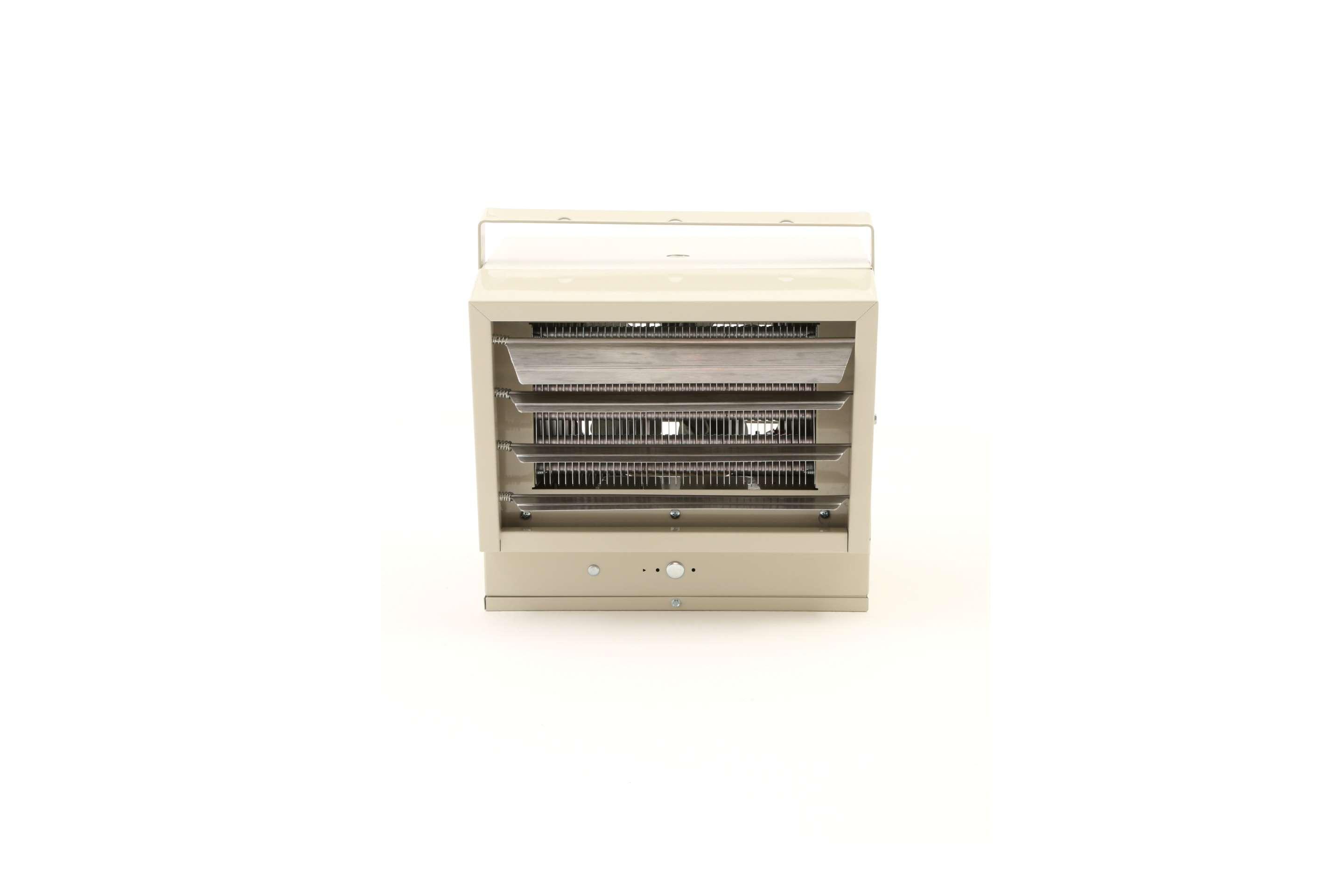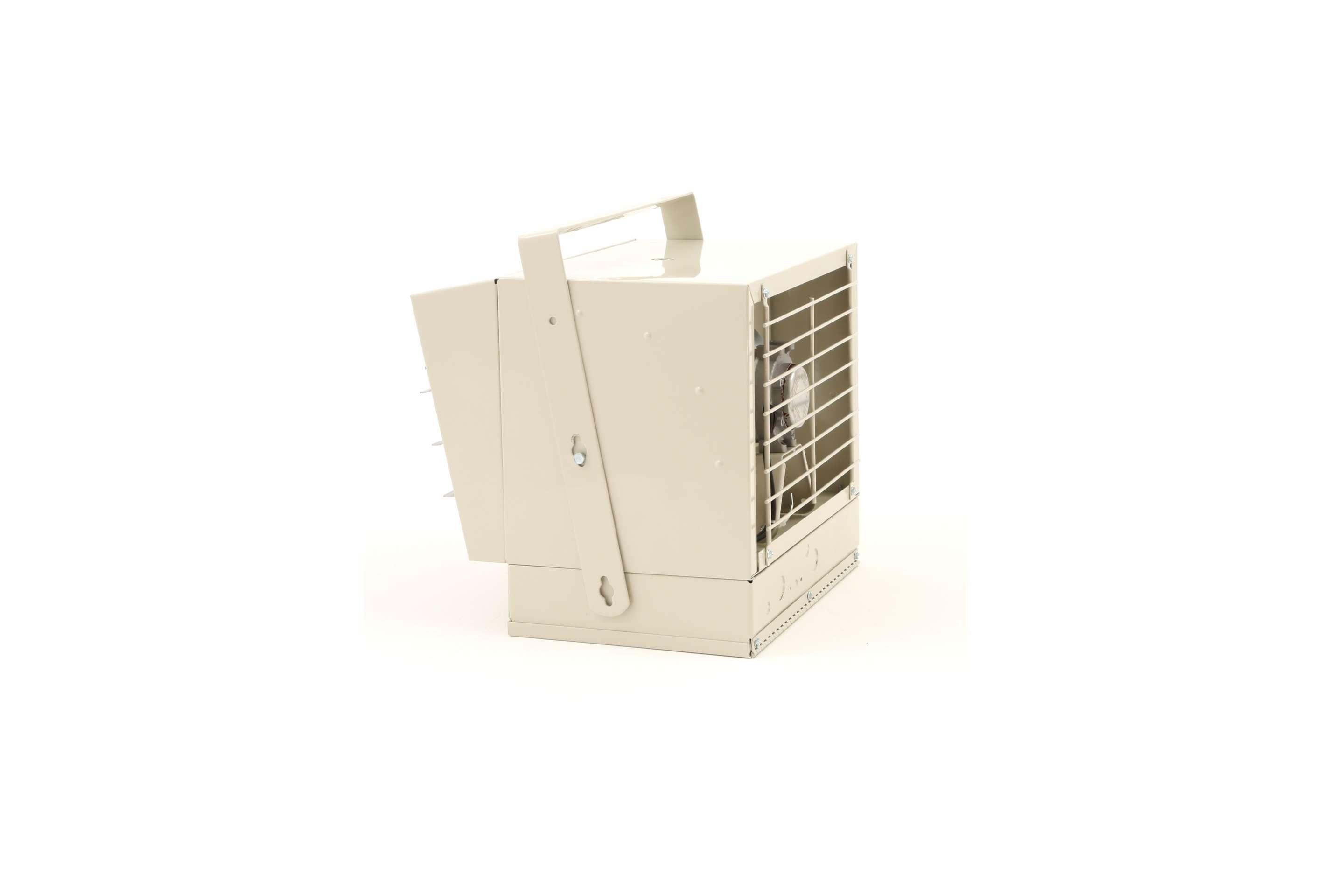Berko® Unit Heater, 1 to 3-Phase Heavy Duty, Series: HUH, 480 VAC, 6 to 10.4 A, 5 kW Power, 270 cfm Flow Rate, 1400 rpm Speed, 60 deg F, Ceiling Mounting, 8 ft Mounting Height, 18 ga Cold Rolled Steel, Beige, Polyester Powder Coated, 14 in W x 12-3/8 in D x 12-1/2 in H Dimensions