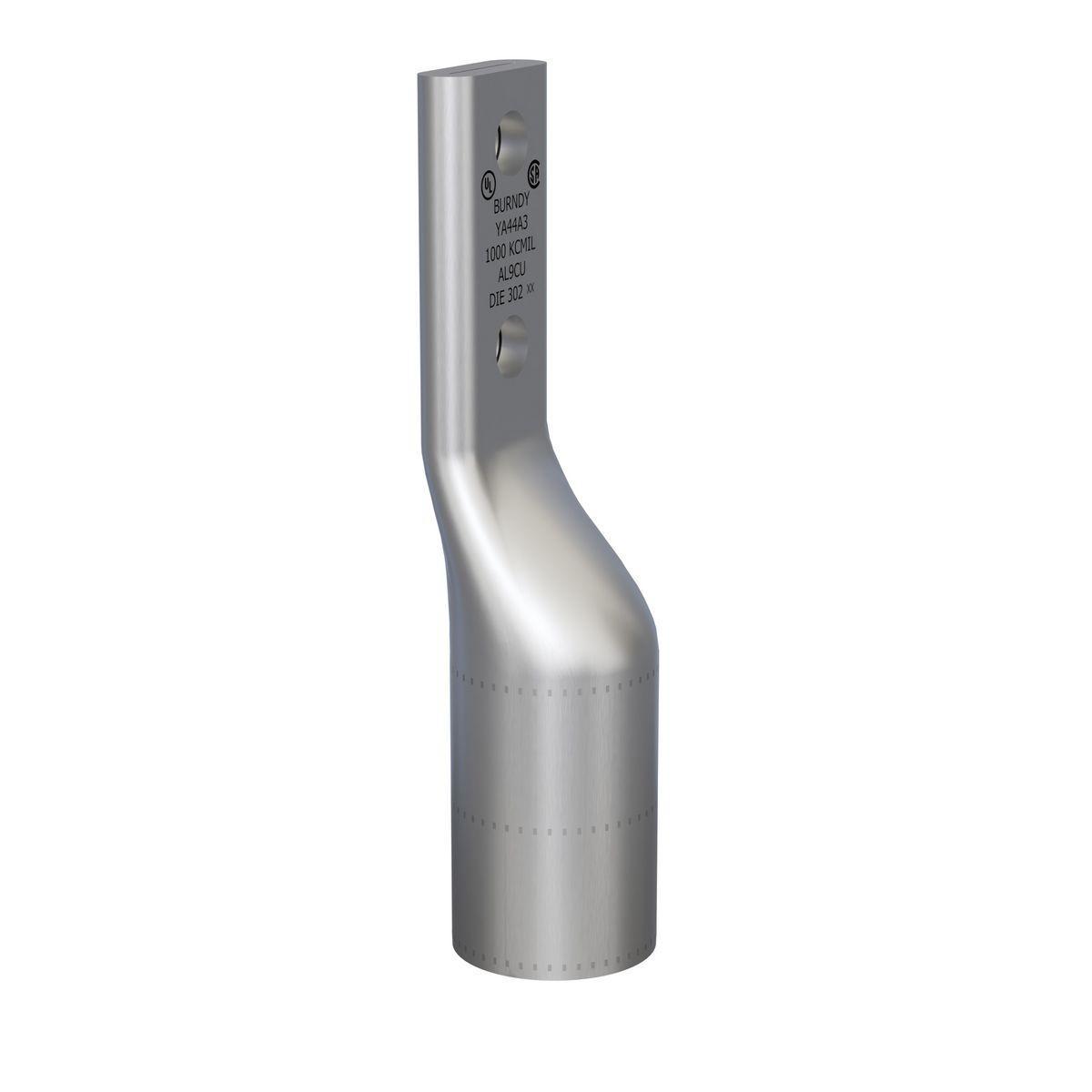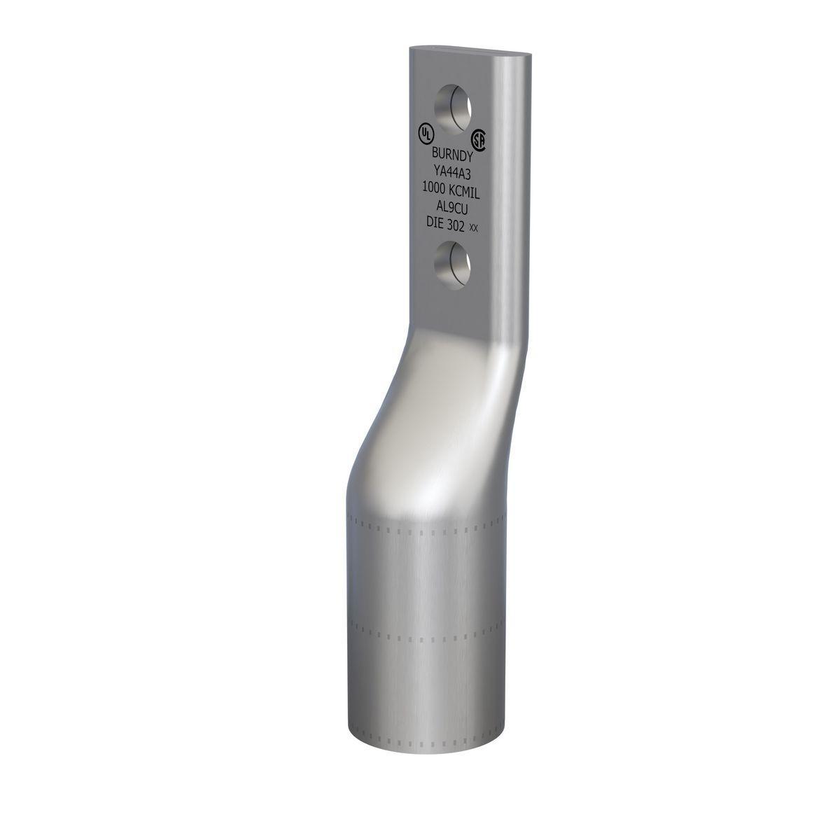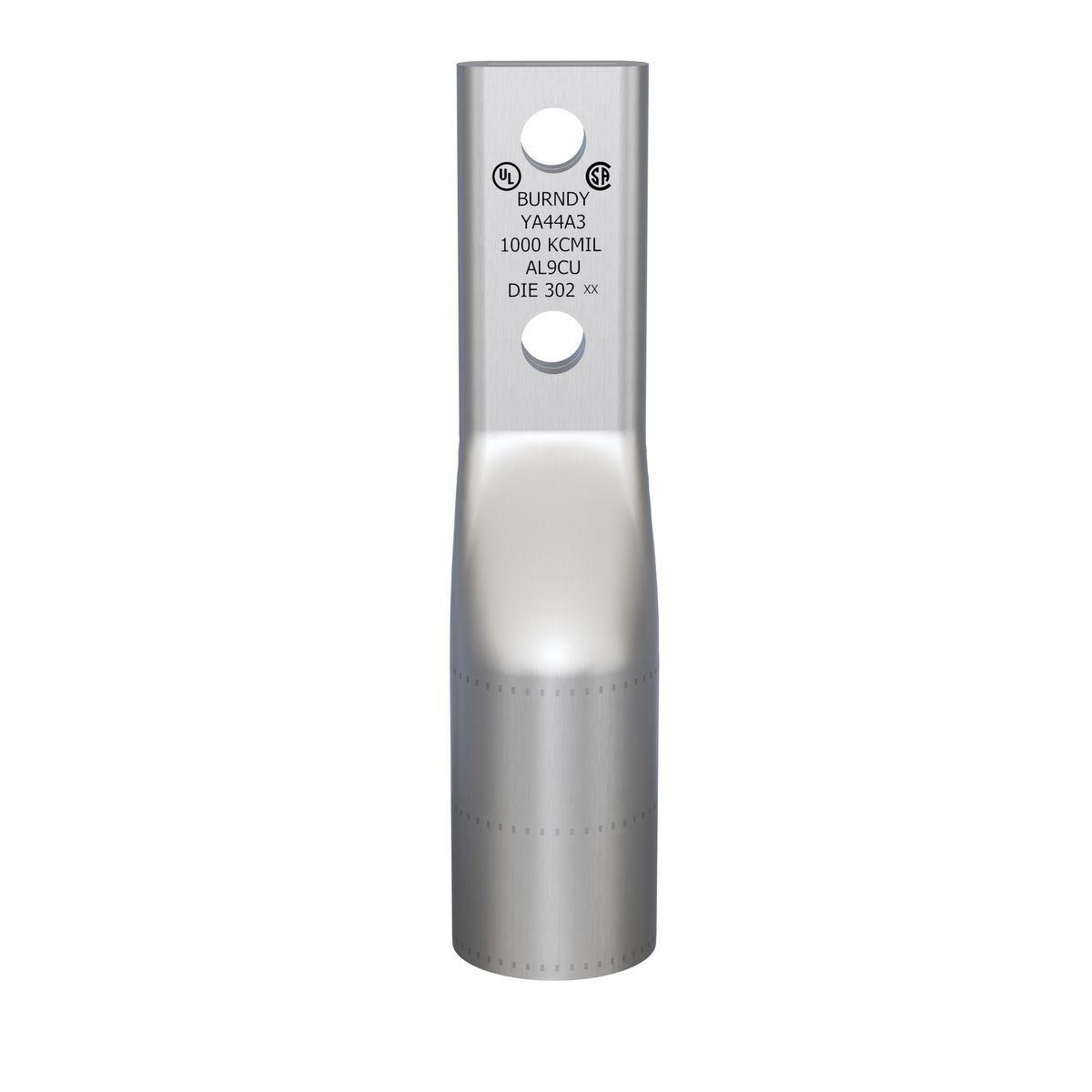 BURNDY® HYLUG™ Compression Lug, 2-Hole, Series: YA-A, Aluminum/Copper Conductor, 1000 kcmil Conductor, Die Code: 302, 600 VAC to 35 kV, 1/2 in Stud, Standard/Straight Tongue, 2.69 in W x 0.39 in THK Tongue, 7.76 in Overall Length, Long/Standard Barrel, 2.74 in L Barrel, 3-11/16 in L Wire Strip, 90 deg C, Aluminum, Brown