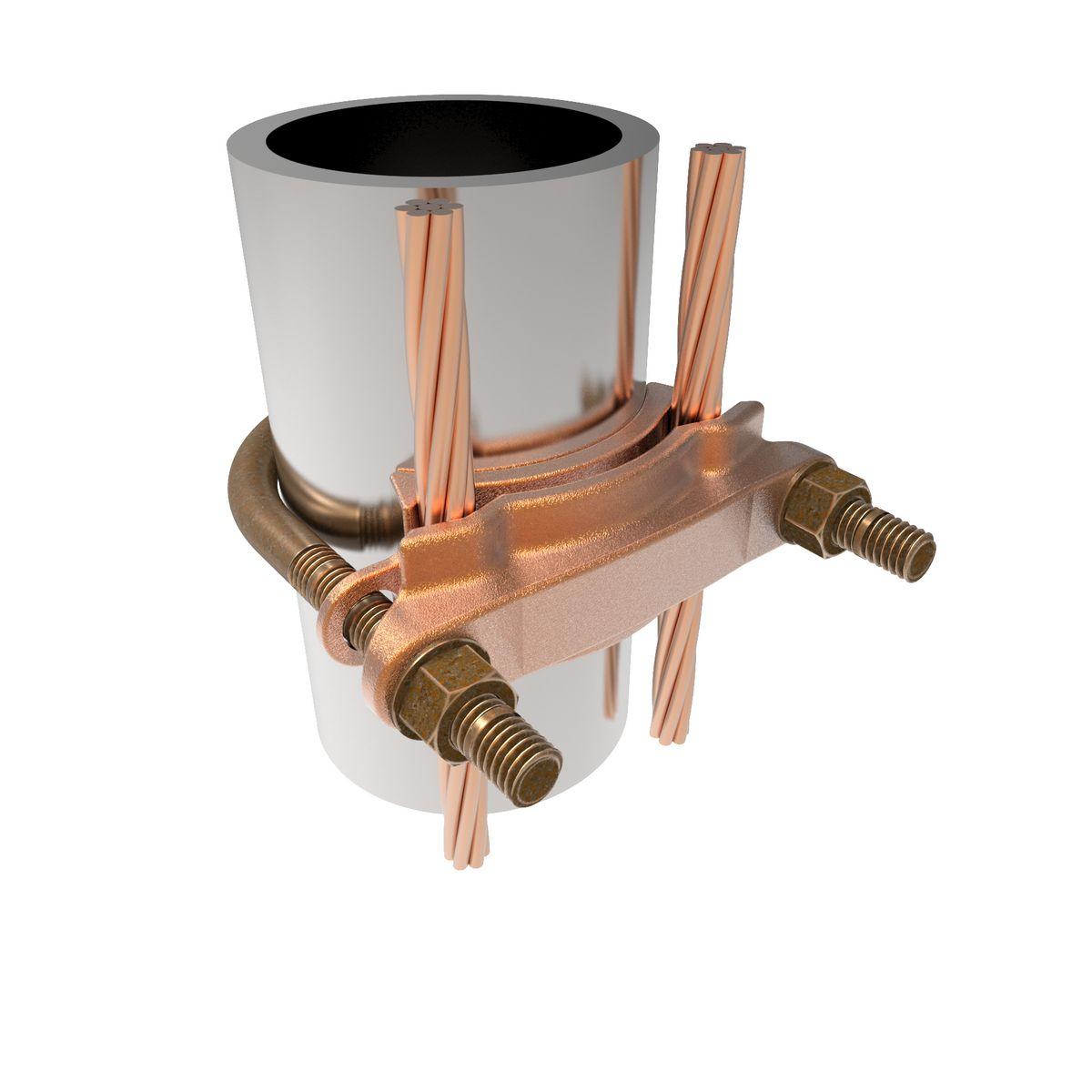 BURNDY® Mechanical Grounding Connector, Series: GD Series, 2-1/2 in Pipe, 2-1/2 to 2-7/8 in Rod, Copper/Stranded/Solid Conductor, 4 to 2/0 AWG Conductor, Parallel Cable to Rod/Pipe, Wrench Installation, Copper Alloy, Unplated, 4-1/4 in W x 5 in H