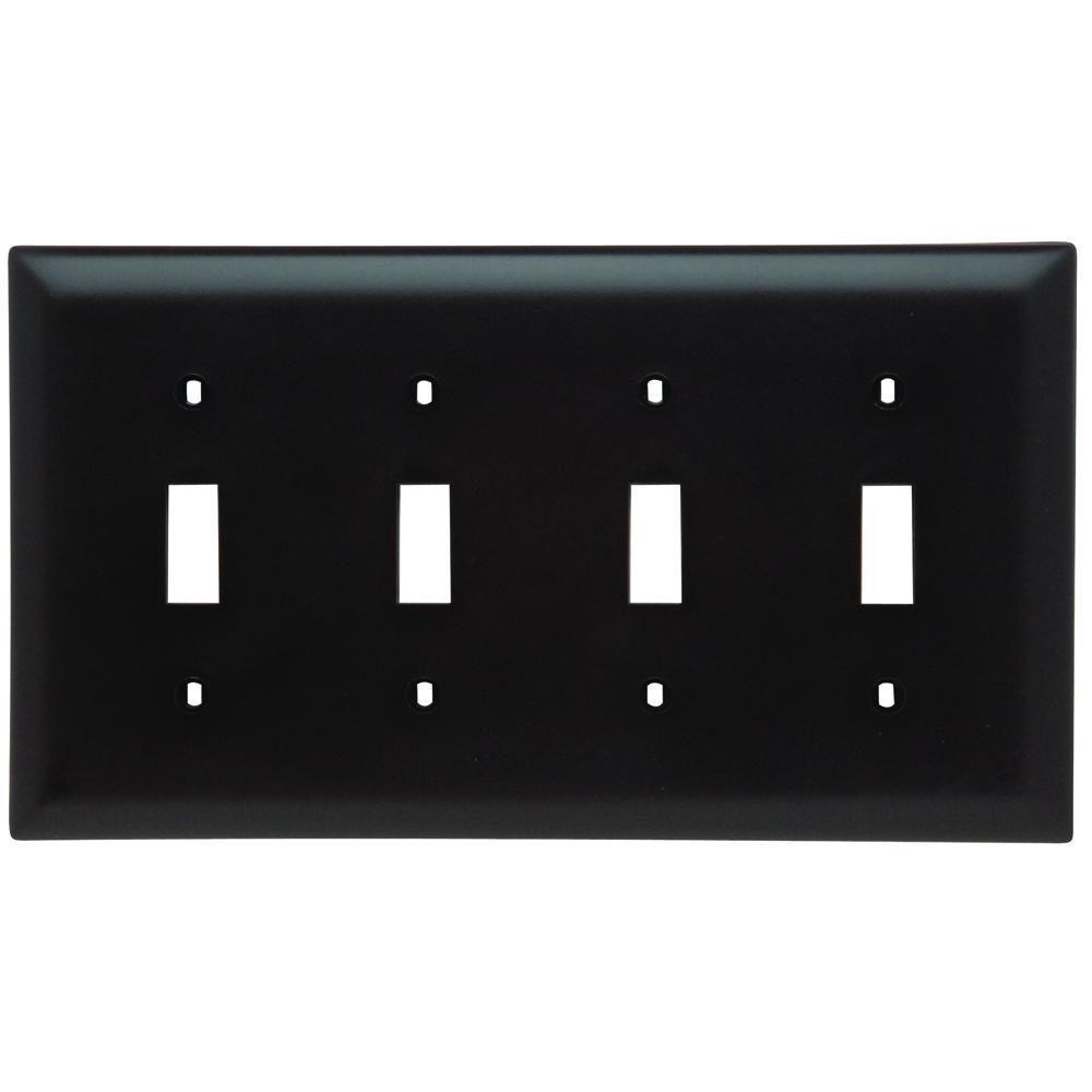 Pass & Seymour®, TradeMaster®, TP4, Standard Wall Plate, 4 Gangs, 4 Ports, 8-1/8 in W x 5-1/2 in H Size, (1) 15/16 in L x 13/32 in W Toggle Switch Cutout, Orientation: Vertical, Bare Insulation, Wall Mounting, Molded Construction, 0.45 in Thickness, Thermoplastic, Brown, Smooth
