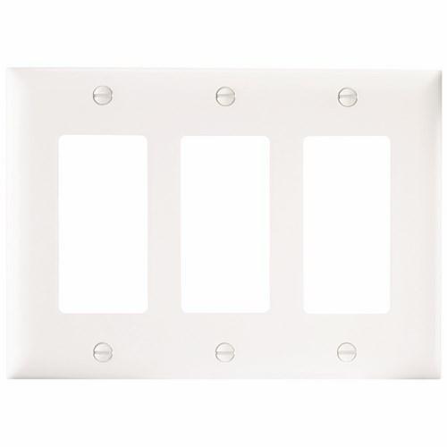 Pass & Seymour®, TradeMaster®, TP263W, Standard Wall Plate, 3-Port, 3 Gangs, 6.563 in W x 4.7 in H Size, 2.634 in H x 1.312 in W Decorator Cutout, Orientation: Vertical, Bare Insulation, Wall Mounting, Molded Construction, 0.35 in Thickness, Nylon/Thermoplastic, White