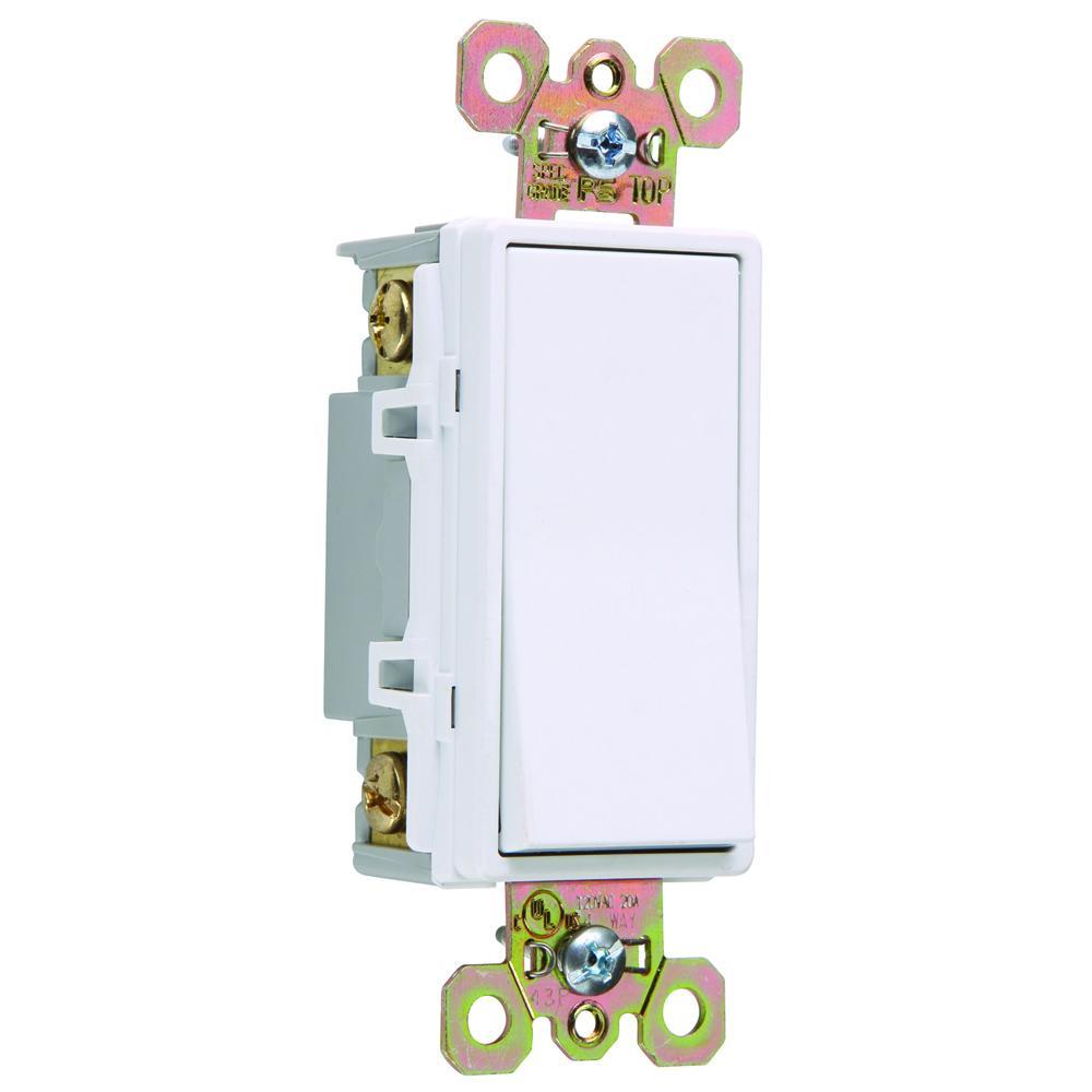 Pass & Seymour® Decorator Switch, 4-Way Illuminated, 120 VAC, 20 A, 4 W Power, 20 A at 120 VAC Contact, 4 Pole, Paddle/Rocker Actuator, Bare Insulation, Wall Mounting, Back/Side Wire/Threaded Terminal, 50000 Cycles Operating Cycles, Polycarbonate, White, Environmental Conditions: -40 to 115 deg C Temperature, 4.2 in H x 1.3 in W x 1.06 in D Dimensions