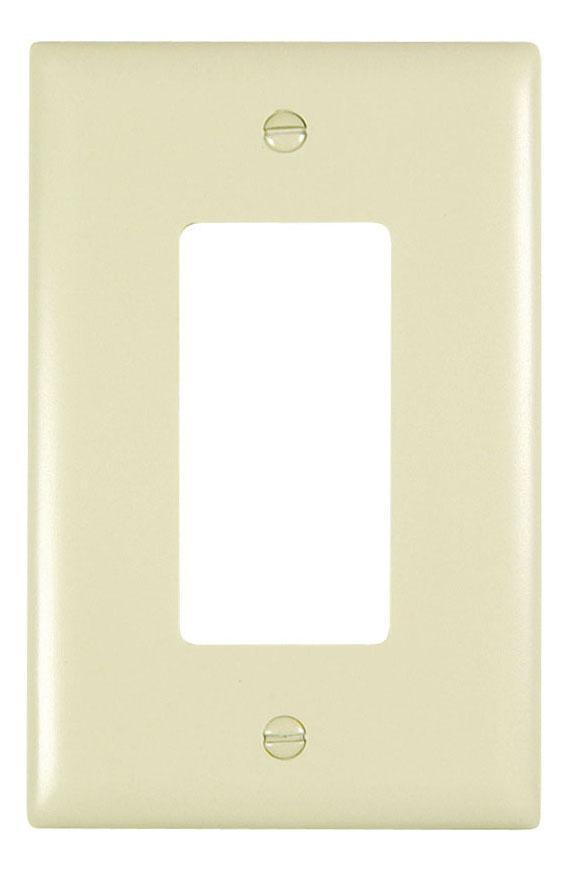 Pass & Seymour®, TradeMaster®, TPJ26I, Standard Wall Plate, Junior Jumbo, 1 Gangs, 1 Ports, 3-5/16 in W x 4.9 in H Size, 2.634 in H x 1.312 in W Decorator Cutout, Orientation: Vertical, Bare Insulation, Wall Mounting, Rugged Construction, 0.35 in Thickness, Nylon/Thermoplastic, Ivory