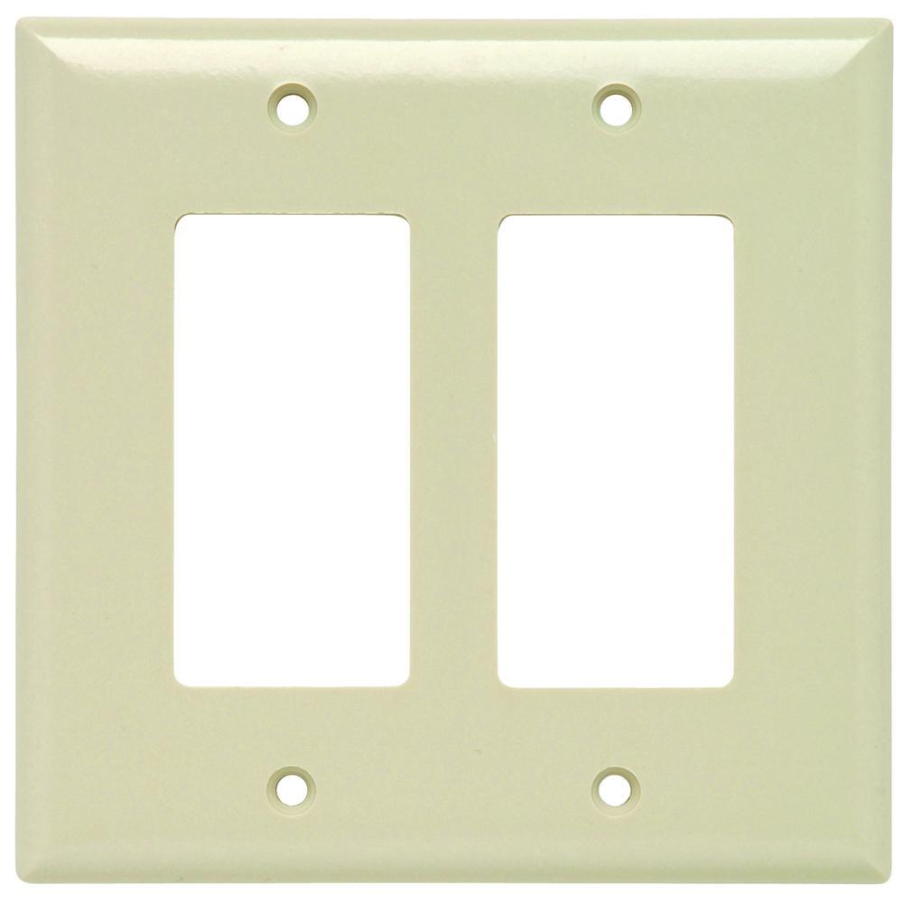 Pass & Seymour®, Sierraplex®, SPJ262I, Wall Plate, Junior Jumbo, 2 Gangs, 2 Ports, 4.93 in W x 5 in H Size, 2.634 in H x 1.312 in W Decorator Cutout, Orientation: Vertical, Bare Insulation, Wall Mounting, Molded Construction, 0.3 in Thickness, Thermoplastic, Ivory, Smooth