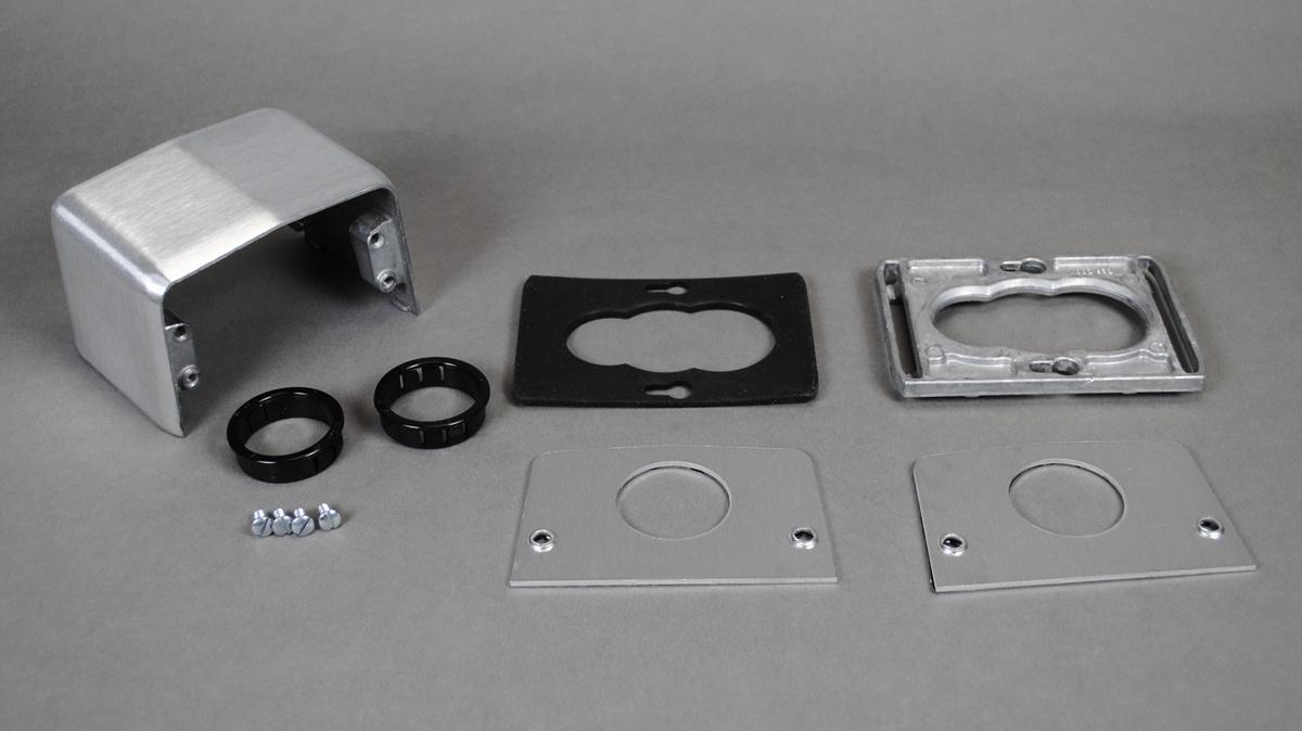 Wiremold® Communication Service Fitting, 4-Piece, Series: 525, For Use With: Walkerduct® Pro Series, Walkerduct® Underfloor Duct, Flushduct® and Walker 800 Series Floor Box, Die Cast Aluminum, Brushed Aluminum/Satin, 4-7/16 in L x 3-1/8 in W x 3 in H