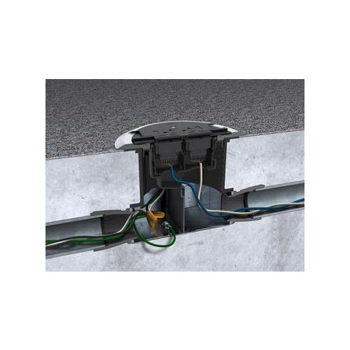• By using 2HUB with the RPSFB and RPSFB-OG floor boxes (sold separately) a greater capacity of preterminated cables can be brought in shallower concrete pours