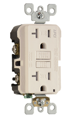 Pass & Seymour® AF20TRLA Tamper-Resistant AFCI Receptacle, 125 VAC, 20 A, 2 Poles, 3 Wires, Light Almond