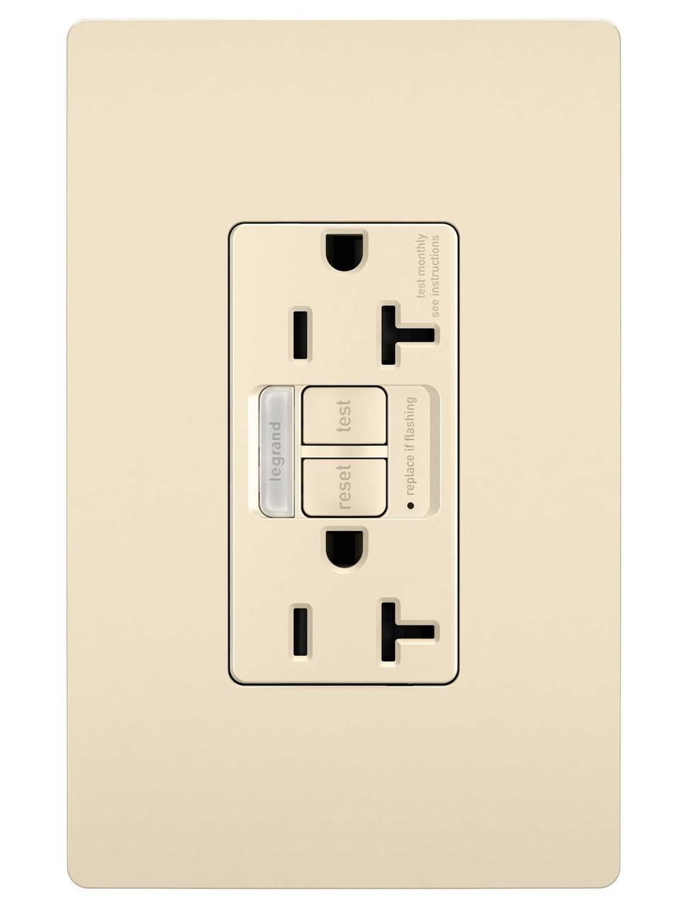 Pass & Seymour® Radiant® TradeMaster® 2097NTLTRLA Combination Self-Test Tamper-Resistant GFCI Receptacle, 125 VAC, 20 A, 2 Poles, 3 Wires, Light Almond