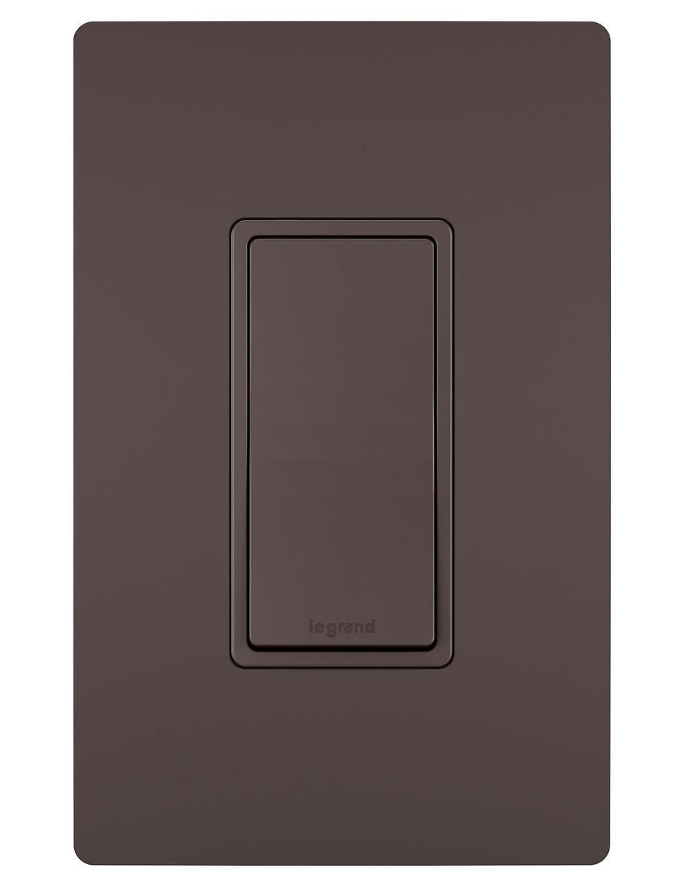 Pass & Seymour® radiant® Decorator Switch, Grounding, 120/277 VAC, 15 A, 15 A at 120/277 VAC Contact, 1 Pole, Paddle, Bare, Wall, Threaded Terminal, Thermoplastic, Dark Bronze, 4.19 in H x 1.43 in W x 1.27 in D