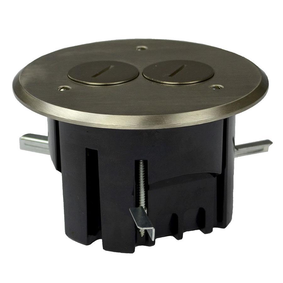 Allied Moulded FB-3N Duplex Floor Box Assembly With Nickel Plated Brass Cover, Polycarbonate, 24.5 cu-in Capacity, 2 Outlets, 2 Knockouts, 3.94 in W x 3 in D