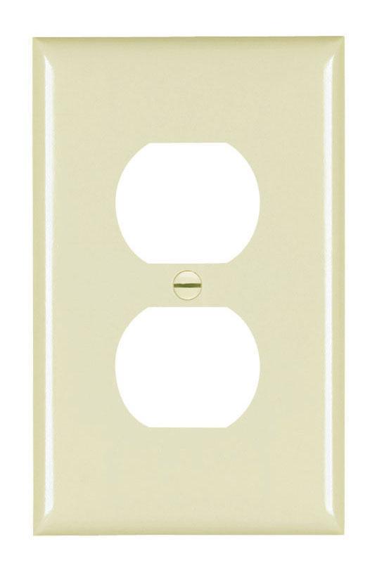 Pass & Seymour®, TradeMaster®, TPJ8LA, Receptacle Wall Plate, Junior Jumbo, Series: TPJ, 1 Gangs, 2 Ports, 4.9 in Size, 1-1/8 in H x 1-11/32 in W Duplex Cutout, Bare Insulation, Wall Mounting, Molded Rugged Construction, 0.35 in Thickness, Thermoplastic, Light Almond