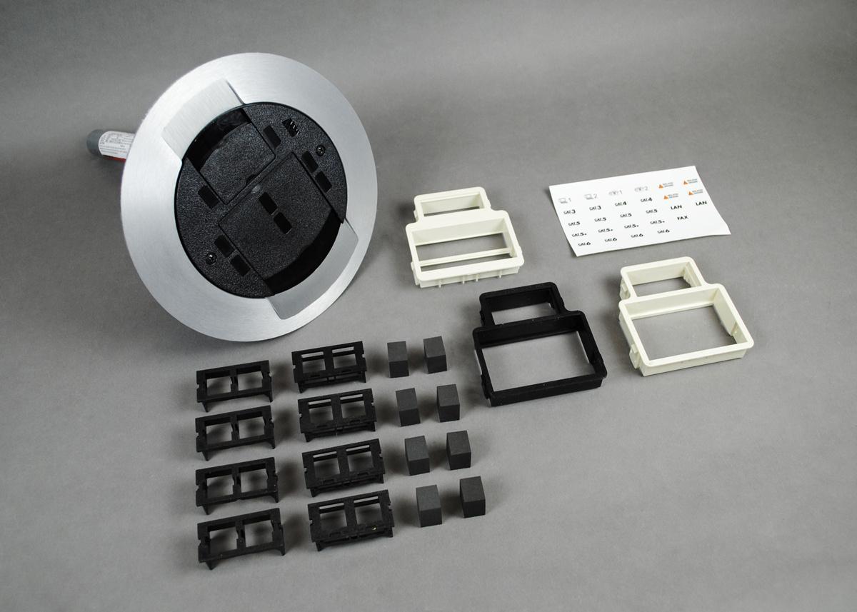 Wiremold® Poke-Through Assembly, 1-Service Communication, Series: AMD8, 4 in, 1-1/4 in Knockout, Flush Device Type, 7 in Width, 9-3/4 in D, 7 in Cover, Aluminum/Brass, Gray
