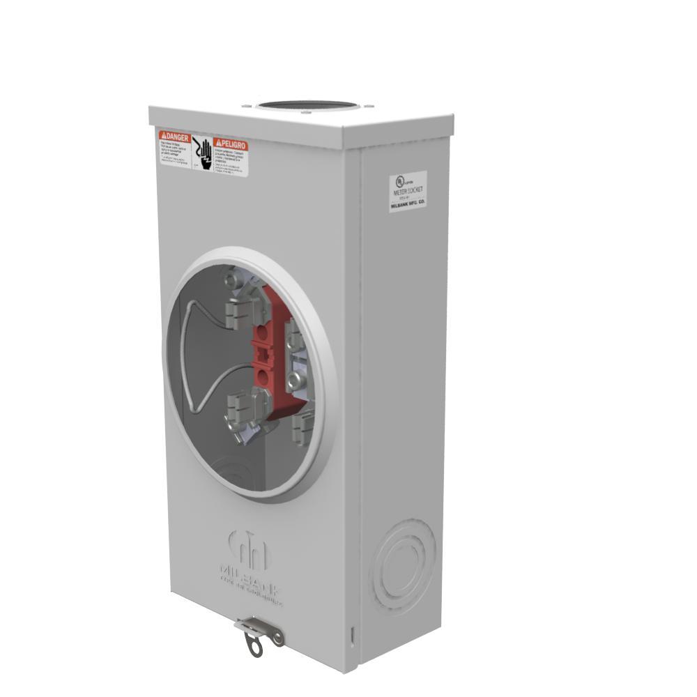 Milbank® Meter Socket, 1-Position, 600 VAC, 200 A, 1 ph, 60 Hz Frequency, Overhead Feed, 4 Jaws, 6 AWG to 350 kcmil Wire, Small Opening Hub, Ringless Cover, Single Lay-In Line Side/Load Side Connector Terminal, Surface Mounting, NEMA 3R Enclosure, 4-1/8 in ID x 8 in OD x 15-1/2 in H Dimensions