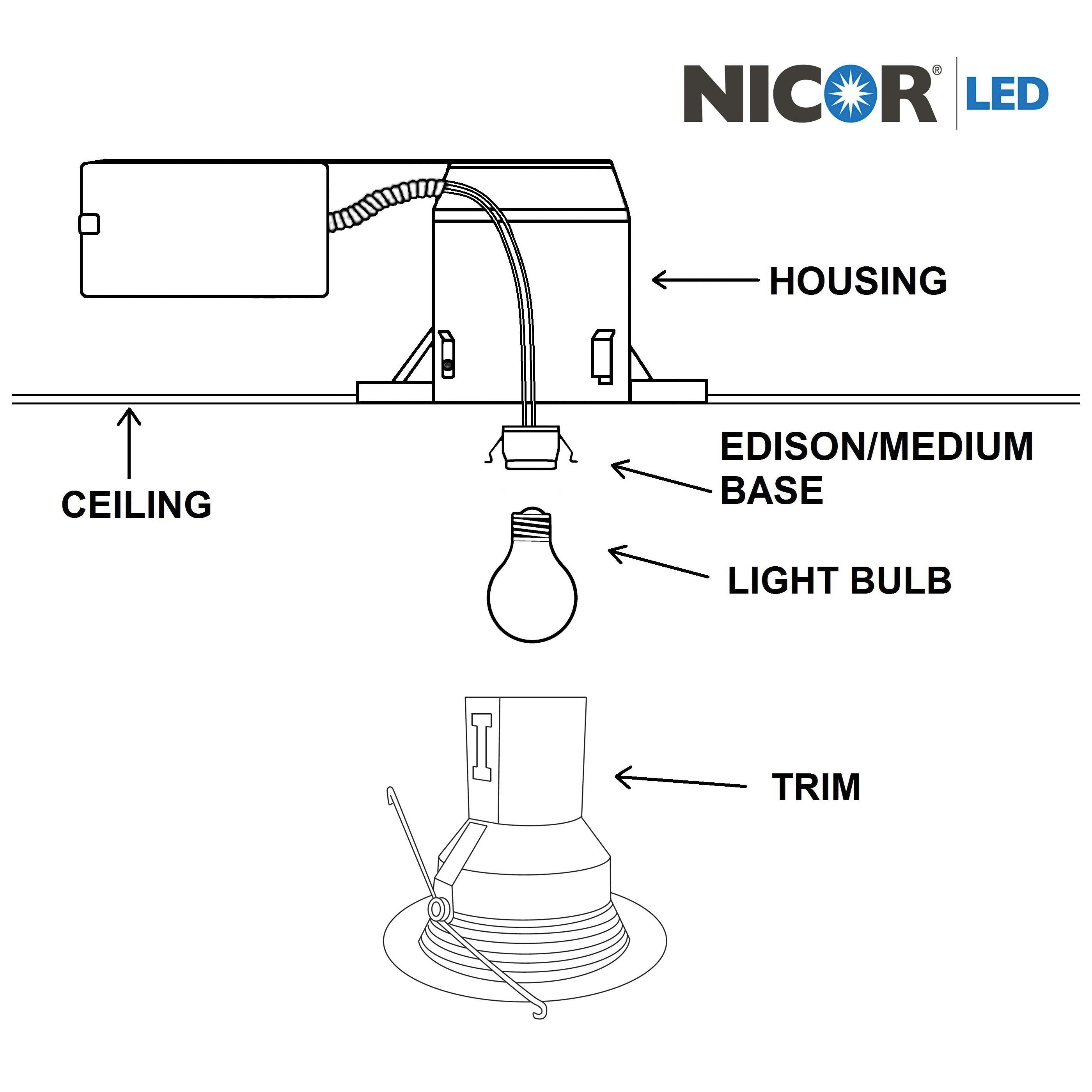 Nicor quality constructed 5 in baffle trims create a simple and attractive finished look for any room. The 15511 Series baffle trims are designed for PAR30 and BR30 light bulbs rated up to 75 W. The 15511 Series baffle trims are designed to fit standard 5 in recessed housings using torsion springs (included) for installation. The 15511 measures 6.5 in in diameter, an open aperture of 5 in, and a depth of 5-1/2 in. Use with any of Nicor 5 in non-shallow recessed housings for a perfect match, or use with an existing 5 in non-shallow recessed housing.