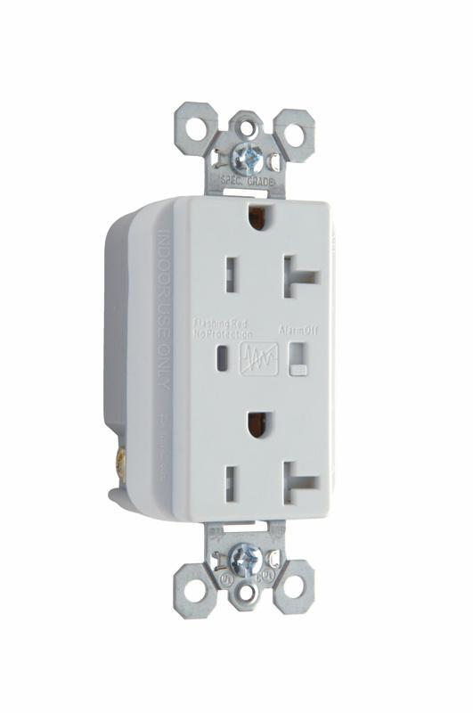 Pass & Seymour® Straight Blade Receptacle, Duplex Extra Heavy Duty Surge Protective Tamper-Resistant, 125 VAC, 20 A, 60 Hz Frequency, 2 Pole, 3 Wires, NEMA 5-20R NEMA Rating, Specification Grade, -4 to 131 deg F, Back/Side Wire Terminal, Nylon/Thermoplastic, White, 1.75 in W x 0.94 in D x 3.82 in H Dimensions