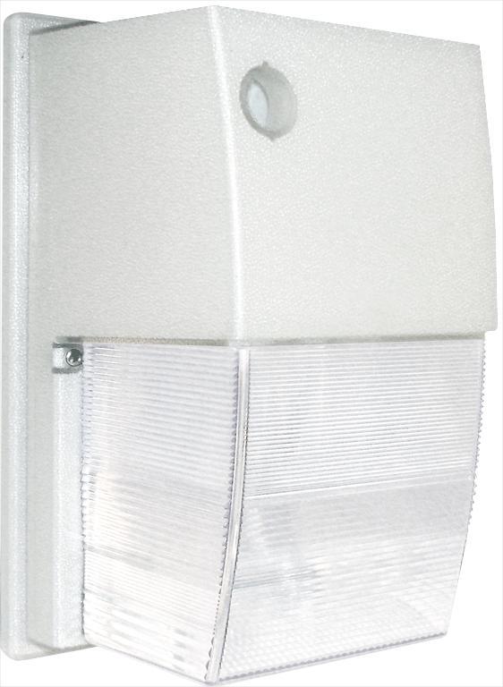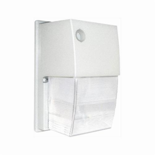 RAB Wallpack, 120/208/240/277 VAC, 46 W Fixture, 0.38/0.3/0.2/0.17 A, CFL/Triple Tube Lamp, 42 W Lamp, GX24q-4 Lamp Base, 1 Lamp, 10000 hr Average Life, Electronic HPF Quad Tap Ballast, Prismatic Polycarbonate Lens, 3000 Lumens, Surface Mounting, Die Cast Aluminum Housing Material, White Housing Finish, 11 in H x 6-7/8 in W x 5-3/4 in D Dimensions