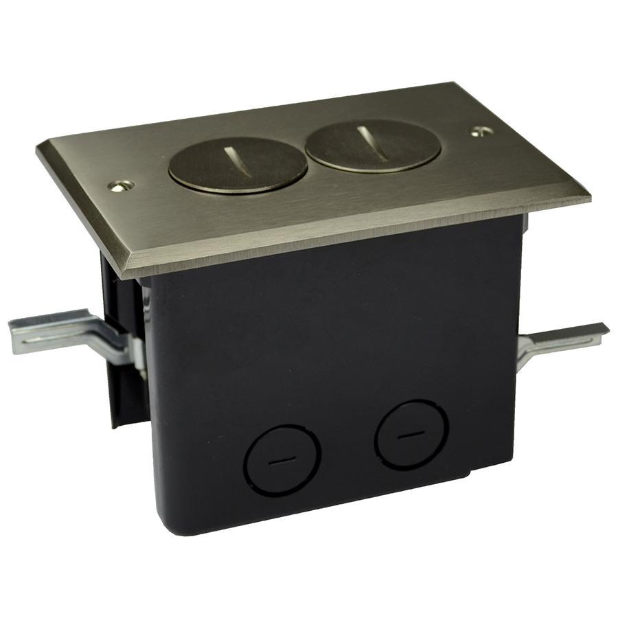 Allied Moulded FB-2N Duplex Floor Box Assembly With Nickel Plated Brass Cover, Polycarbonate, 24.5 cu-in Capacity, 1 Gangs, 2 Outlets, 4 Knockouts, 4.31 in H x 2.5 in W x 3.5 in D