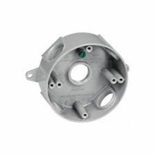 Mulberry Weatherproof Round Box, 5 Outlets, 5 Knockouts, 3/4 in Hub, Knockout Cable Entry, 4 in Dia, Round, Threaded Mount, Vertical Mount, 15.3 cu-in, Die Cast Aluminum, Powder Coated, Gray, 1-1/2 in D