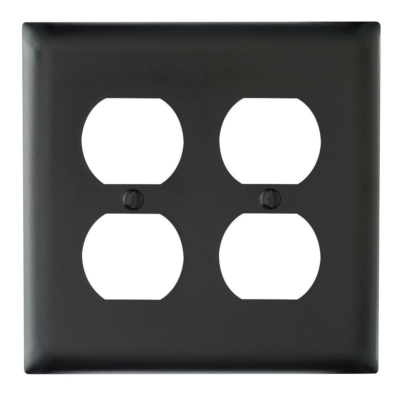 Pass & Seymour®, TradeMaster®, TP82BK, Receptacle Wall Plate, Standard, Series: TP Series, 2 Gangs, 4 Ports, 4.7 in Size, 1-1/8 in H x 1-11/32 in W Duplex Cutout, Bare Insulation, Wall Mounting, Molded Rugged Construction, 0.35 in Thickness, Thermoplastic, Black, Matte