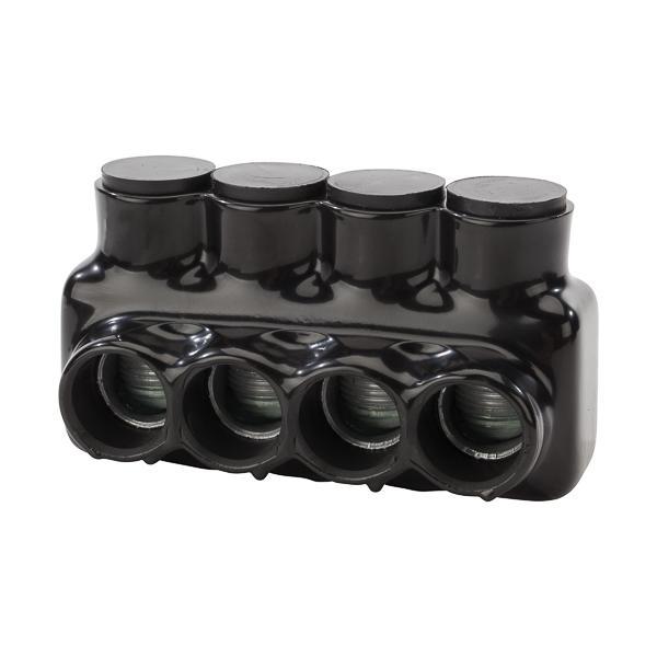 NSI Polaris™ Insulated Multi-Tap Connector, Double Sided Entry, Series: IPLD, Aluminum/Copper Conductor, 4 AWG to 500 kcmil Conductor, 600 VAC, 1 Pole, 4 Conductor, Class B and C Wire Type, 5/16 in Hex, -45 to 90 deg C, Plastisol, Black, 5.24 in L x 2.83 in W x 2.91 in H