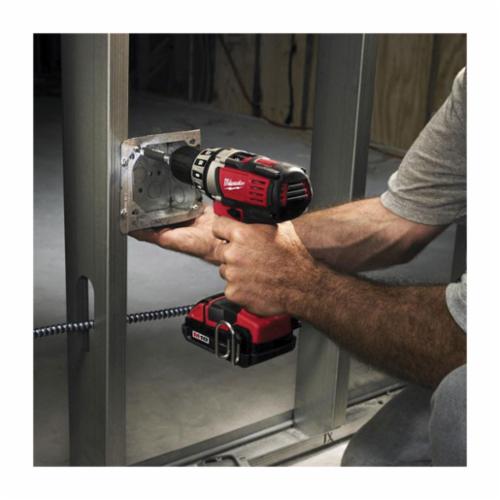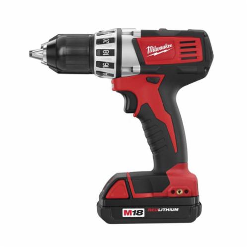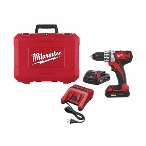 Milwaukee® Cordless Drill/Driver Kit, Compact, Kit Bare Tool/Kit, 1/2 in Chuck, Ratcheting Lock/Single Sleeve Chuck, 0 to 500 rpm, 0 to 1500 rpm No-Load, 2 Speed, 425 in-lb Torque, 18 VDC, Li-Ion Battery, 1.4 Ah Battery, Battery Included: Yes, Non-Slip/Soft Grip/T-Handle Handle, 7-3/4 in Overall Length