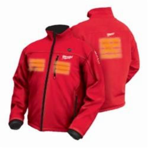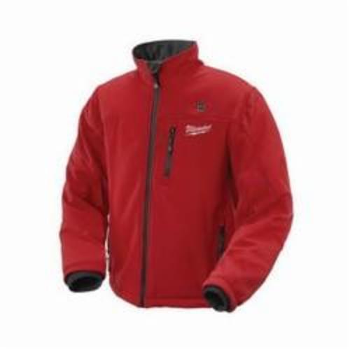 Milwaukee® Heated Jacket, Cordless Multi-Zone, Series: M12™, Men's Gender, L Size, Red, 95% Polyester/5% Spandex®, 50 in Chest, 28 in Length, Zipper Closure, 3 Pockets, Resists: Water and Wind